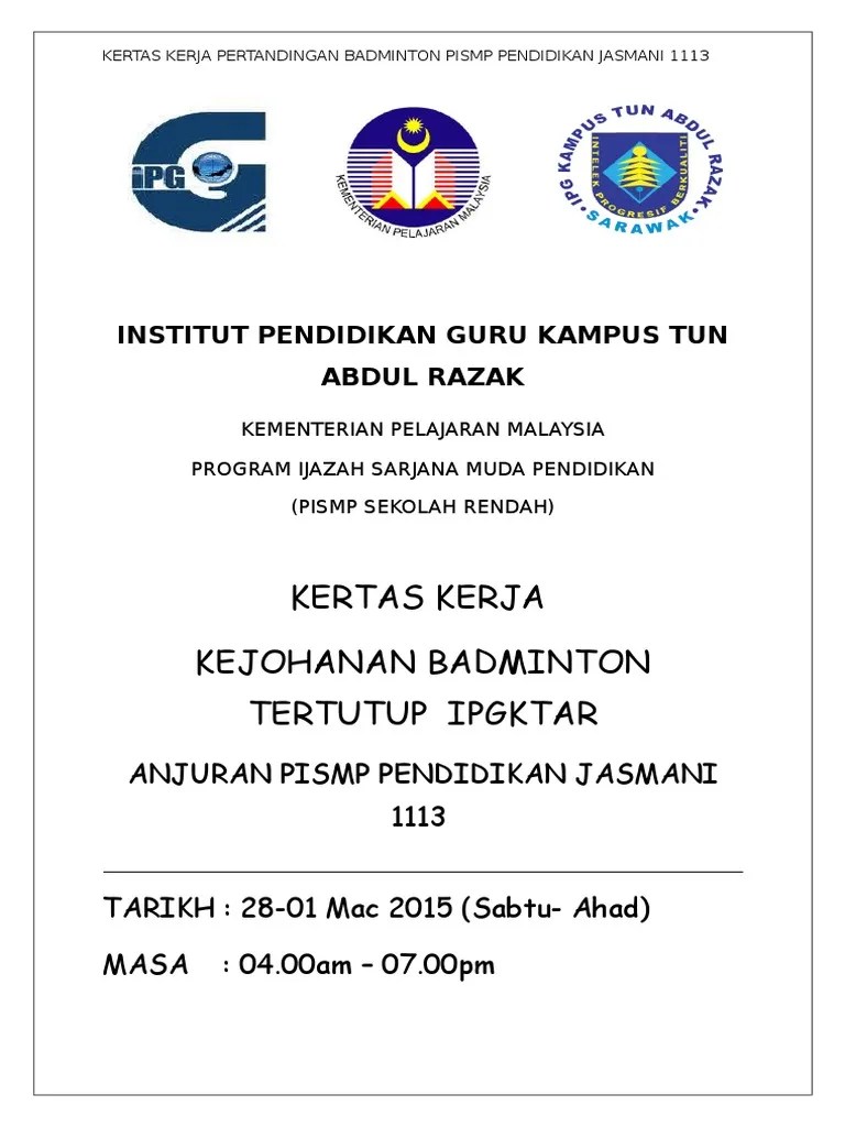 Kertas Kerja Pertandingan Badminton Kampung - Kertas Kerja Pertandingan Badminton Beregu Tertutup